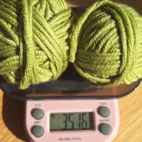 2x50g + 59g, ialt 159g farve 120 lot 0934 samt en rest på 4g af mørkegrå, hvor jeg ikke kender farve og lot nummer.