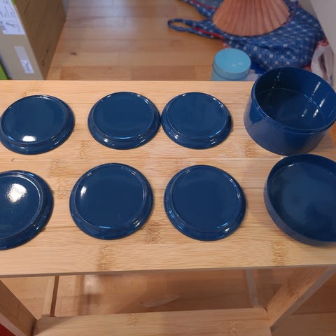Mål dåse : diameter 9 cm, højde med låg 5 cm.