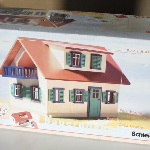 Schleich bondegård legehus med stald og tilbehør. Sættet består af et stort hus med flere rum, senge, køkkenområde og opholdsrum samt en separat staldbygning med bokse og låger. Der medfølger hegnselementer, små redskaber og diverse tilbehørsdele til leg på gården. Huset og stalden er udført i plast i lyse farver med rødt tag og grønne døre og vinduer. Velegnet til leg med Schleich dyr og figurer.