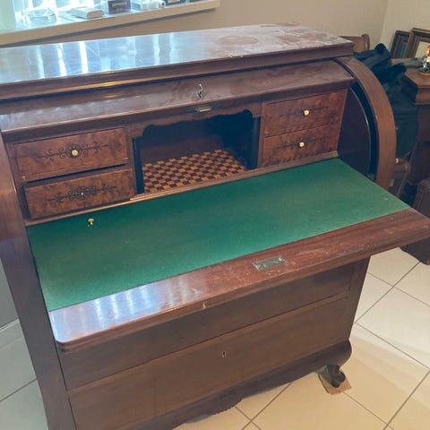 Rigtig fint chatol med tre store skuffer og skriveplade.