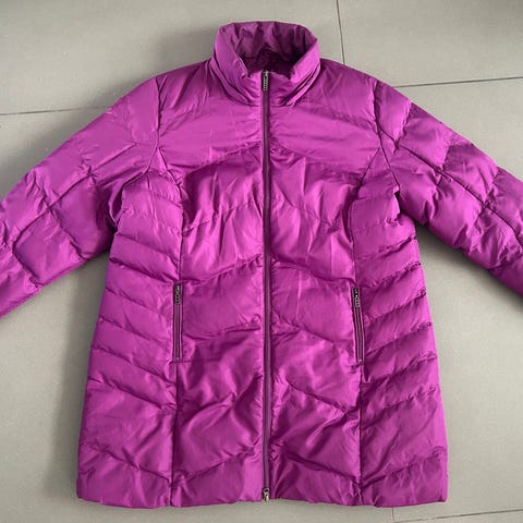 Junarose jakke til kvinder i str. 46. Jakken er fremstillet i polyester og har et multifarvet camouflageprint. Modellen er en længere, vatteret jakke med hætte og forlommer. Velegnet som overtøj i køligere vejr. Der ses en mindre skade ved en af lommerne. Ikke noget af betydning.