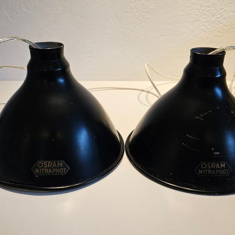 Osram Nitraphot loftlamper, vintage, sorte, 23 cm diameter, 18 cm høj