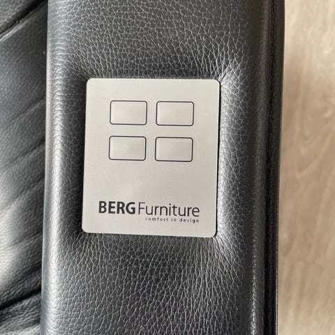 2 Lænestole med skammel i sort læder. Fra Berg. Model NASA. Nypris for sættet 46.000kr.
