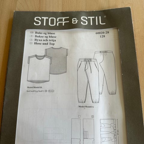 Stof & Stil 60024-40 mønster til playsuit i str. 140. Mønstret viser en enkel buksedragt med kort ærme, elastik i taljen og knaplukning foran. Velegnet til syning af playsuit til børn i størrelse 140. Mønstret er markeret som EASY og indeholder oversigt over materialeforbrug og målskema på bagsiden.