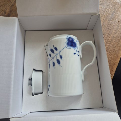Perfect for both hot and cold drinks – or as an elegant sauce jug. A modern reinterpretation of the classic Blue Fluted pattern and a timeless piece of Danish design.
