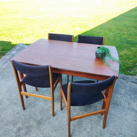 Dansk design fra tresserne. Retro spisebord og stole-sæt.