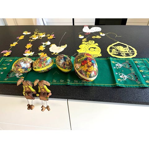 &Tradition påske dekoration med høne og fyrfadslys. Dekorationen forestiller en farverig høne med blomster og grønt samt en holder til fyrfadslys øverst. Motivet er udført i faste materialer med malede detaljer i gule, røde, grønne og blå nuancer. Medfølgende små påskepynt på pinde kan placeres sammen med dekorationen efter behov. Velegnet som bordpynt eller vinduesdekoration i påsken🐣🐣