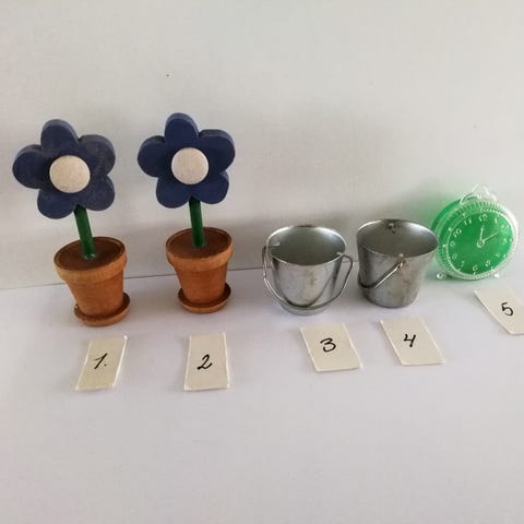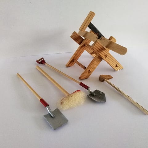 Forskelligt tilbehør til dukkehus. Højde på krans er 3,5 cm. Pr. Stk. 5 kr.