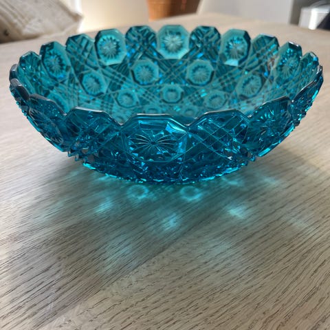 Glas skål klar med blå bund