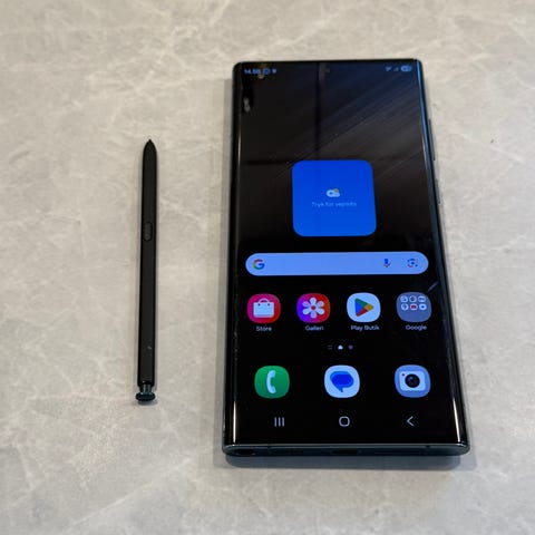 Sælger min trofaste Samsung Galaxy S22 Ultra, da jeg har fået ny telefon. Mobilen er topmodellen med fantastisk kamera, indbygget S Pen og en af markedets bedste skærme.