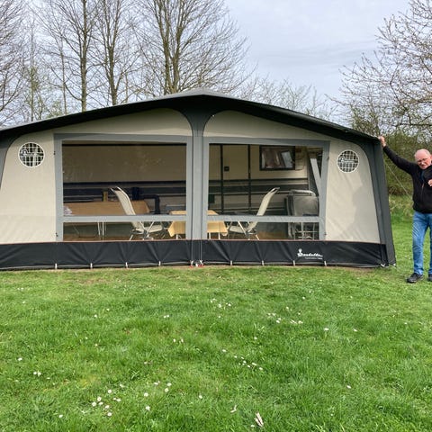 Der medfølger 4 ekstra loft stænger og anneks. Anneks er ikke brugt særlig meget. Stængerne er Carbon. Minus ved teltet er at der har lagt en vandpøl oven på loftet i venstre side som der har gjort at man ikke kan få strammet taget helt ud i den side da stoffet er blevet lidt løst der. Men har hørt at man sagtens kan tage teltet med ind og få syet en ny stykke telt loft på fra den ene syning til den anden hvis man vil det.