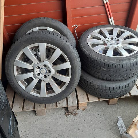 4 Mercedes fælge passer bl.a. til C-klasse. 2 stk 275/30 R19 og 2 stk. 245/35 R19. Alle med fint mønster. Der er kantstensskrammer der dog sagtens kan udbedres