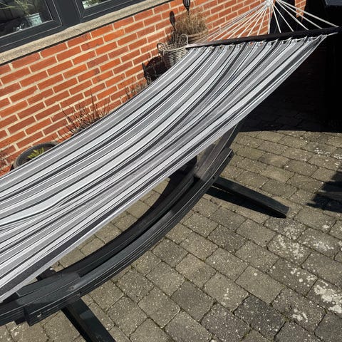 Fatboy hængekøje i lysegrå. Pude samt opbevaringstaske medfølger.