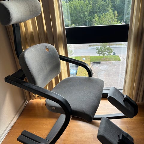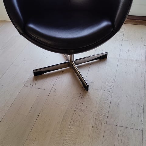 Sort Peel lænestol fra Stokke med skammel sælges.