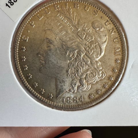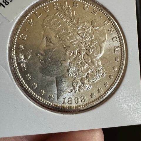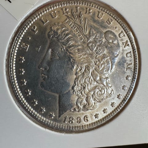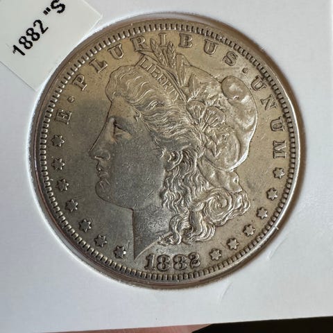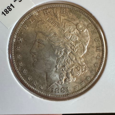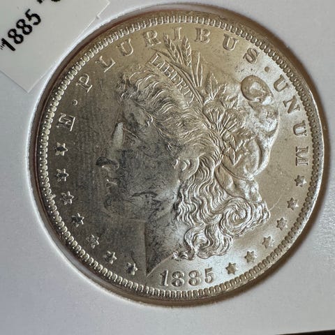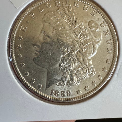 USA Morgan Dollar sølvmønt fra 1879. Forsiden viser Liberty-hovedet med teksten "E Pluribus Unum" og årstallet 1879. Bagsiden viser en ørn med udbredte vinger omgivet af en krans samt påskriften "United States of America" og "One Dollar". Mønten er en amerikansk 1 dollar sølvmønt, velegnet til samlere af historiske mønter og amerikansk numismatik.