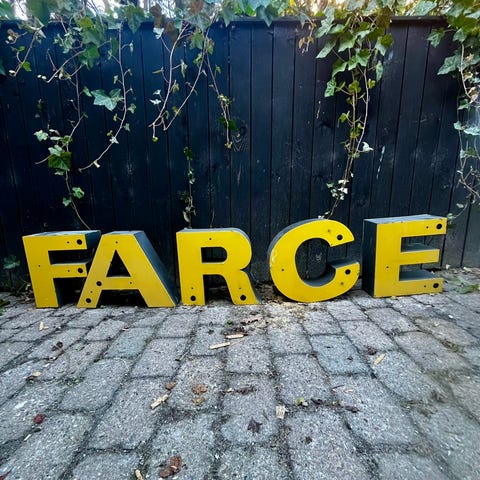 Sælger de her lækre facadebogstaver. Har udover FARCE også et I.