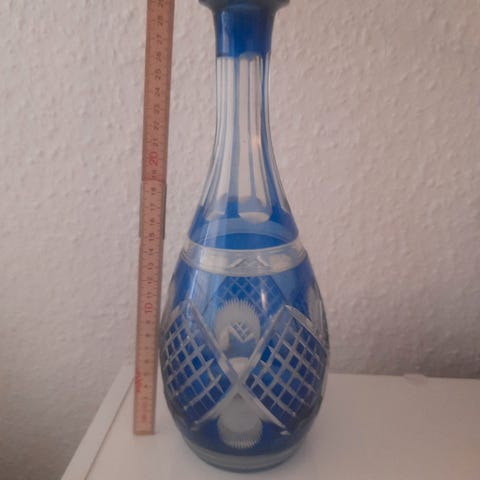 Vase, Blå krystal vase, Fin mindre krystal vase i blå, med klart mønster.