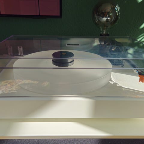 Smuk rød Pro-Ject Carbon Debut pladeafspiller med Phono Box MM