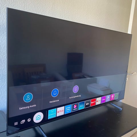Samsung One Connect tv. En fladskærm fra Samsung med One Connect-boks, hvor tilslutningerne samles i en ekstern enhed. Velegnet til brug i stue eller soveværelse til tv, streaming og tilslutning af eksterne enheder via One Connect-systemet. Skærmens præcise størrelse og model fremgår af mærkaten på produktet.
