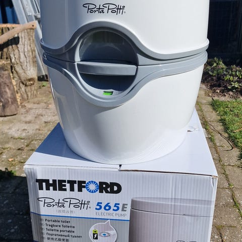 Thetford Porta Potti kemitoilet i hvid plast. Bærbart toilet egnet til campingvogn, autocamper, båd eller kolonihavehus. Toilettet består af øverste del med friskvandstank og nederste del med affaldstank, som kan adskilles for tømning. Låget kan klappes ned, og der er integrerede låg til påfyldning af vand og kemikalier. Medfølgende Dometic GreenCare Tabs kan bruges til affaldstanken for lugtreduktion og nedbrydning. Velegnet til brug, hvor der ikke er adgang til fast toiletinstallation.