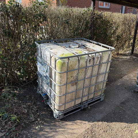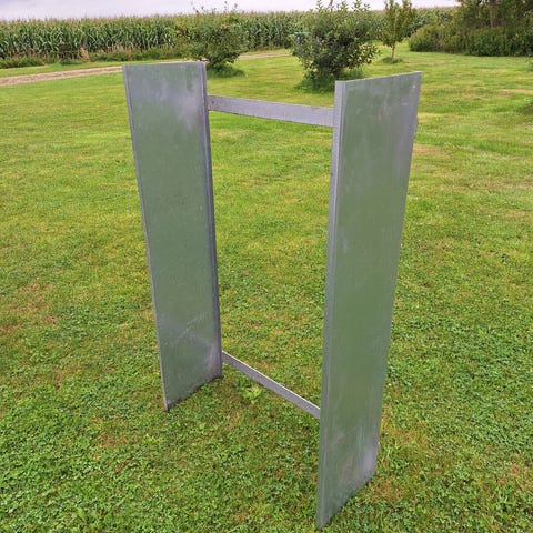 Rullebur i metal med hjul. Vognen har gitter-sider og åben top, egnet til opbevaring og transport af varer eller materialer. Har været brugt til opbevaring af brænde.