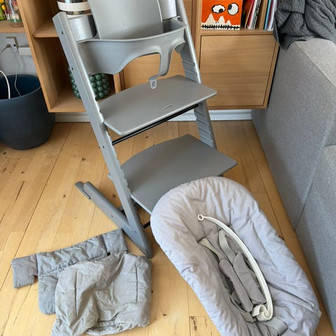 Flot TRIPP TRAPP stol med få skrammer incl. al udstyr.