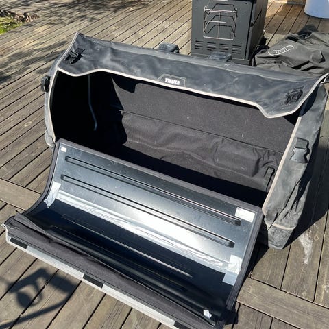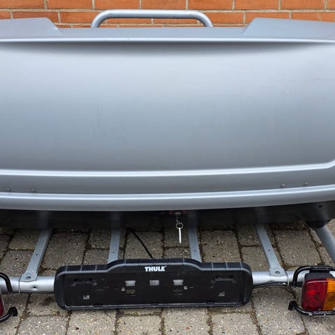Thule bagageboks til montering på anhængertræk. Boksen er i hård plast med blød overdelsdug og stropper til fastgørelse. Farven er overvejende sort med grå overdækning. Der er integrerede baglygter og nummerpladeholder samt stik til bilens el-system. Velegnet til ekstra bagageplads bag på bilen, når der er brug for mere opbevaringskapacitet på køreturen. Og kan tippe sådan du kan komme i bagagerummet