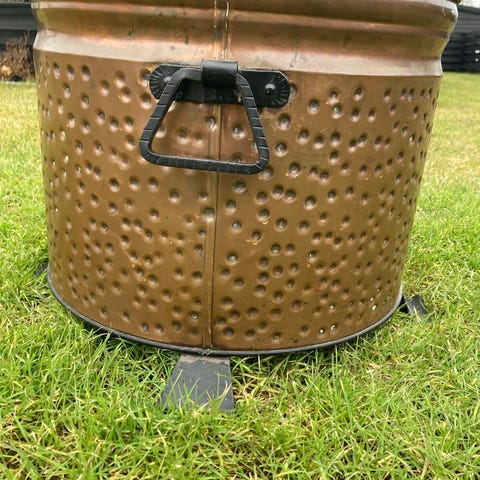 Rund metalring og låg i rustfarvet metal