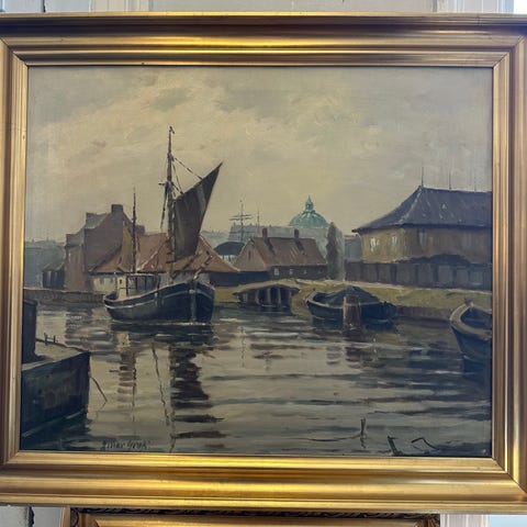 Oliemaleri - Havnmotif; Signeret Leif Brunstorff