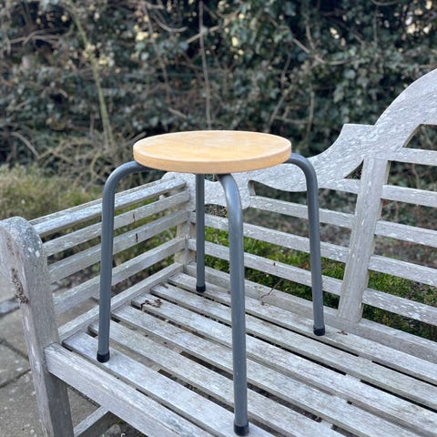 Højdejusterbar skammel med teak look fremstår Rene og pæne udgået IKEA skal sælges billigt og hurtigt Giv et bud