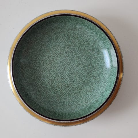 Sød lille skål i blå kant, der er ingen skår eller revner.