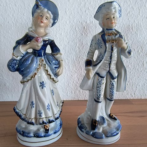 Porcelænsfigurer blandet parti dyr og mennesker hvid og blå