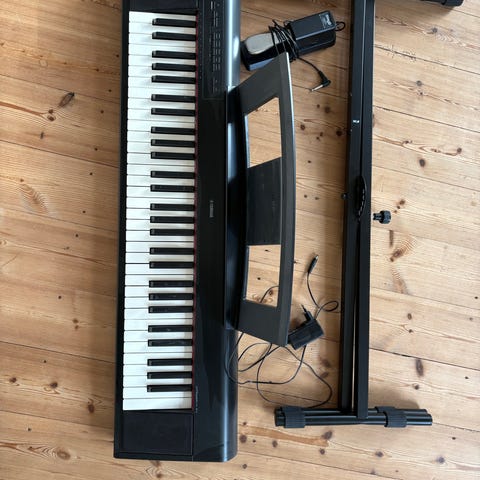 Casio CDP-220R digitalpiano med 88 tangenter i sort finish. Instrumentet har indbyggede højttalere, display og betjeningsknapper på fronten til valg af lyde, rytmer og funktioner. Velegnet til både øvning og hjemmebrug, hvor der ønskes et kompakt digitalpiano med fuldt klaviatur. Leveres med stativ i matchende sort design som vist på billederne.