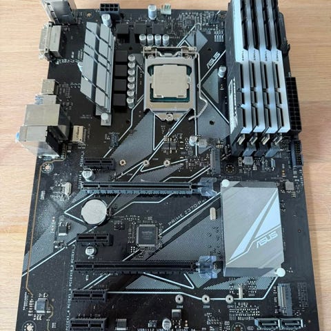 Bundkortet leveres monteret med Intel i7 8700K 3,7GHz i soklen, som vist på billederne.