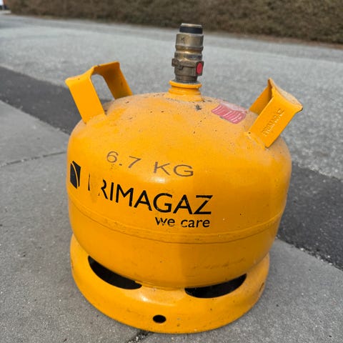 Primagaz gasflaske. Til fx grill, varmeapparater eller andre gasdrevne apparater. 11 kg. Flasken er tom.