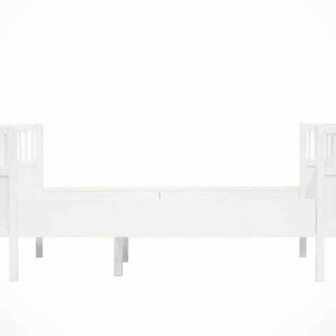 Sebra tremmeseng i hvid. Klassisk lille Per seng. Kun brugt som baby seng. Madras og forlænger medfølger. Små rider i (fra tænder)