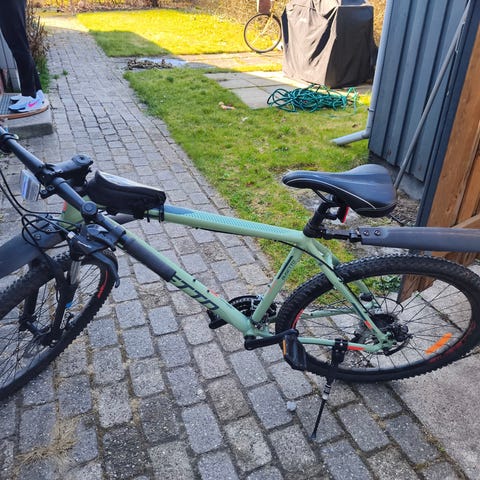 Den har 9 gear og dejligt lædersæde og kraftige dæk der er lidt problemer med bremsen den er lidt svag men det kan fikses meget nemt