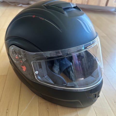 MT Helmets fullface motorcykelhjelm i størrelse M (57-58 cm). Hjelmen er sort med klart visir og ventilation i front og top. Den er godkendt efter ECE og DOT standarder. Vægten er angivet til 1500 g ± 50 g. Velegnet som integralhjelm til motorcykelkørsel.