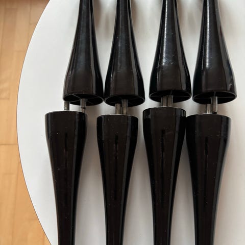 8 stk. Nocturne sengeben i sæbebehandlet eg. Højden er 19 cm. Købt i Ilva. Testet på en ny seng i et døgn og herefter taget af, da de blev for høje.