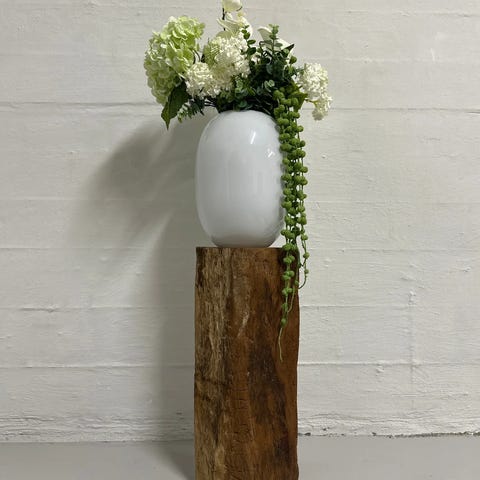 WoodPiedestal lille i fyrretræ. Piedestalen er lavet af gamle, historiske bjælker og spær fra historiske stalde som du kan læse mere om længere nede. Piedestalen har desuden fået en beskyttende behandling, for at beskytte træet på en naturlig måde, med respekt for dets alder og struktur, læs mere i beskrivelsen. Piedestalen måler cirka 51 cm i højden, 20 cm i bredden og 20 cm i dybden. Fyrretræet, der er brugt til piedestalen, har masser af patina i form af slid, huller, revner og andre charmerende detaljer.