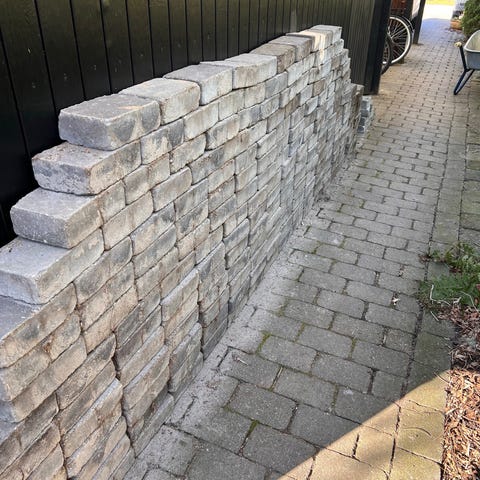 Herregårds belægningssten i grå 14x21 cm. Ca 25 m2. Gratis. Hent det du skal bruge :)