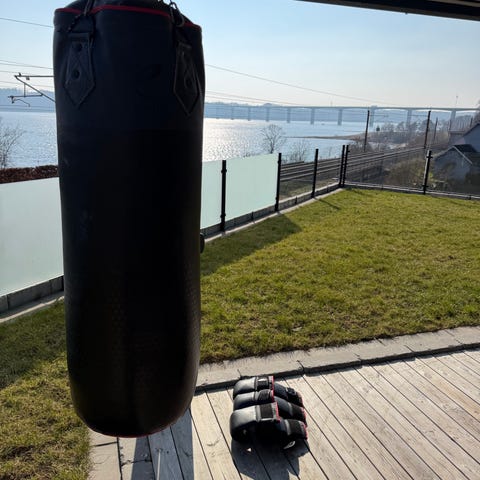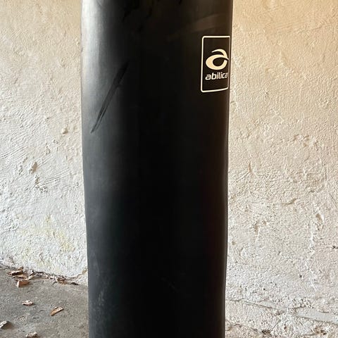 Ophæng med kæder medfølger. Vejer omkring 27 kg og er 110 høj. Perfekt til hjemmetræning