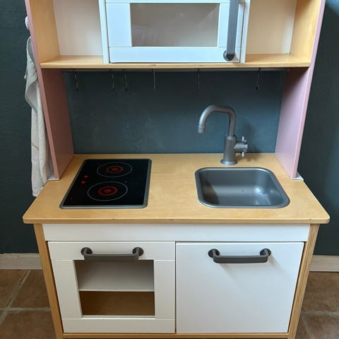 Så er det her et klassisk IKEA DUKTIG legekøkken, der har givet anledning til mange gode timers leg for vores søn og datter, men nu er de blevet for store, og de håber derfor på at finde andre børn, der kan få glæde af det.