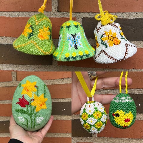 Påskepynt i perler. Pris pr. stk.