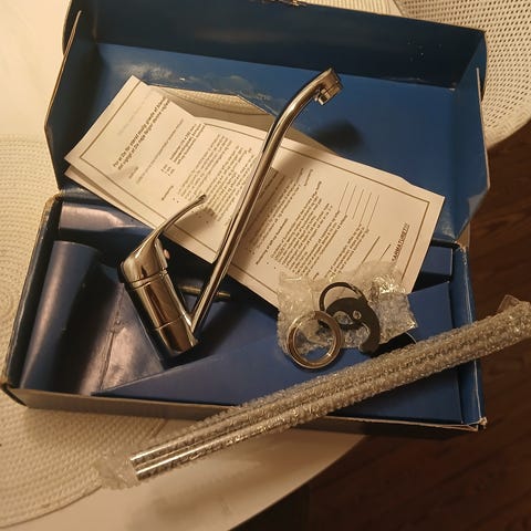 Køkkenarmatur i rustfrit stål fra IKEA.