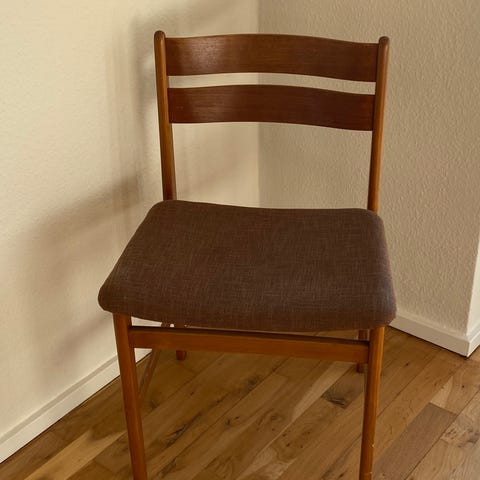 7 virkelige lækkert stole. Kan anvendes til spisebordet eller mødebordet. Stoffet er uld og farven blå.