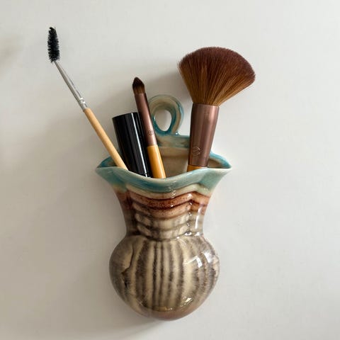 Vægvase af keramik, antageligt West Germany. Perfekt til tandbørsten, kontorsager, makeup - eller blomster