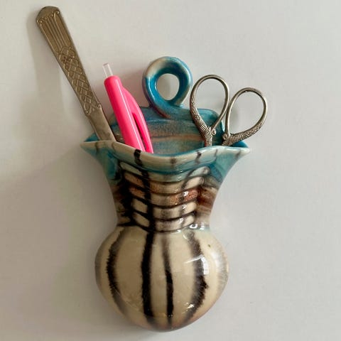 Vægvase af keramik, antageligt West Germany. Perfekt til tandbørsten, kontorsager, makeup - eller blomster