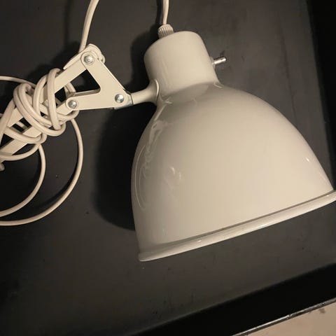 Fin gammel Luxo arkitektlampe med kort arm. Har lidt afskalninger hist og pist, og lidt løs maling på armen. Virker som den skal. Ægte retro.