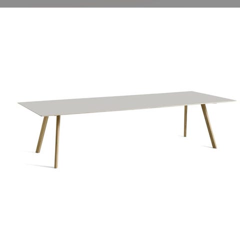 Helt ny bordplade med Forbo linoleum i farven powder med massive olierede egekanter.